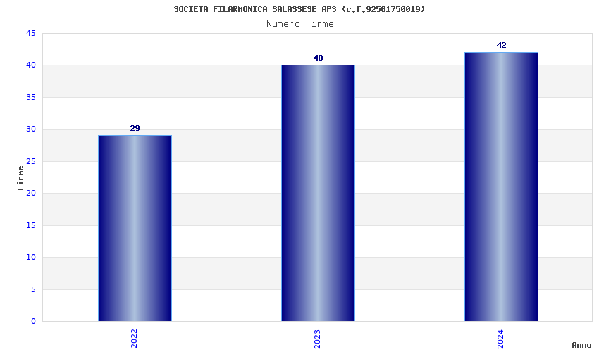 | Anno | Firme | Importi | Media | Naz. | Reg. | Prov. | Comu. |