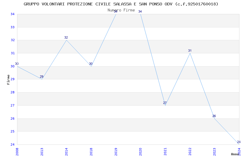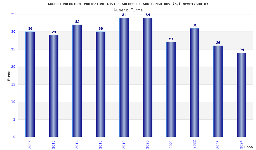 | Anno | Firme | Importi | Media | Naz. | Reg. | Prov. | Comu. |