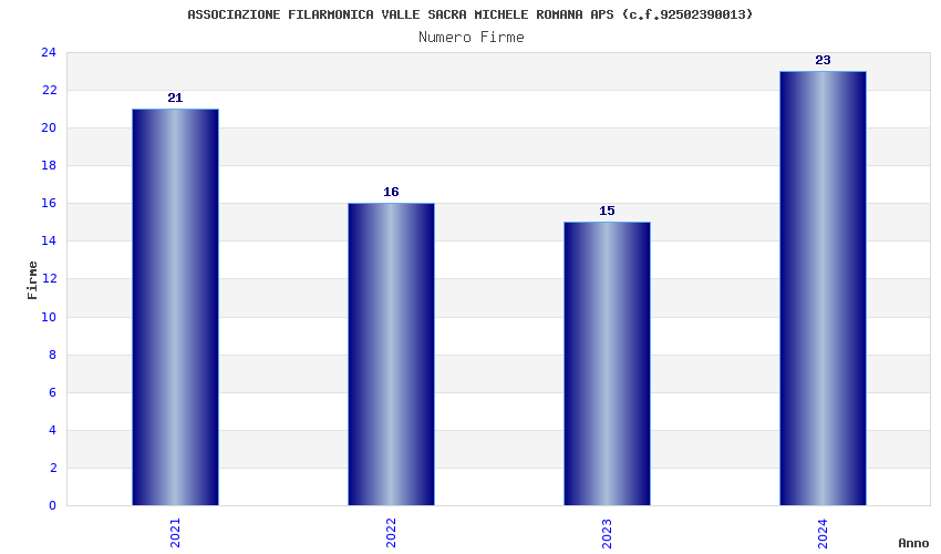 | Anno | Firme | Importi | Media | Naz. | Reg. | Prov. | Comu. |
