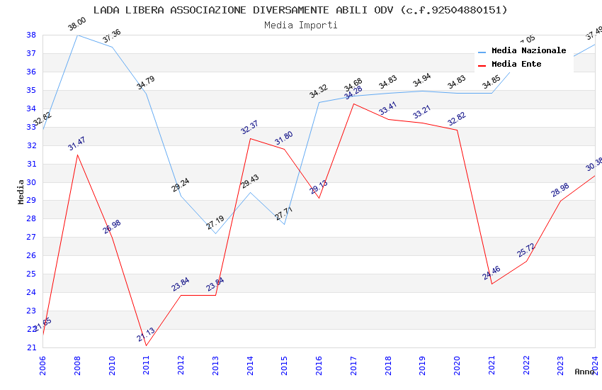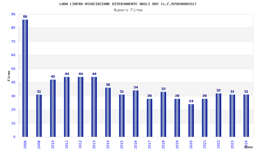 | Anno | Firme | Importi | Media | Naz. | Reg. | Prov. | Comu. |