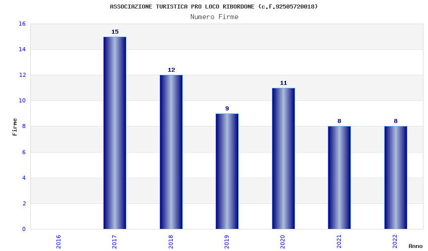 | Anno | Firme | Importi | Media | Naz. | Reg. | Prov. | Comu. |