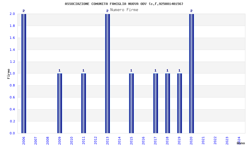 | Anno | Firme | Importi | Media | Naz. | Reg. | Prov. | Comu. |
