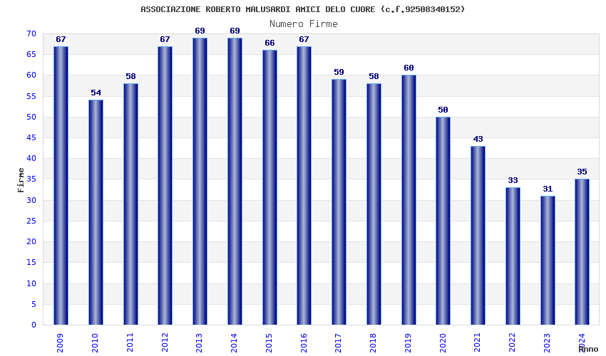 | Anno | Firme | Importi | Media | Naz. | Reg. | Prov. | Comu. |