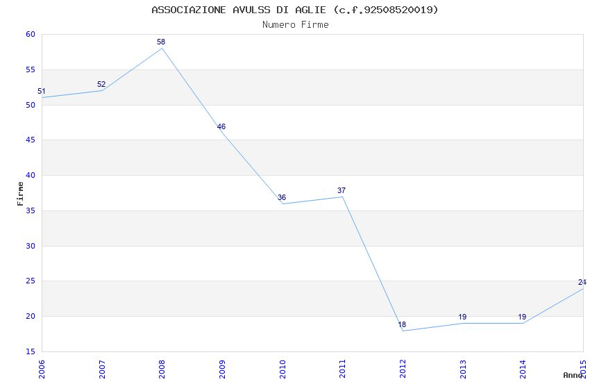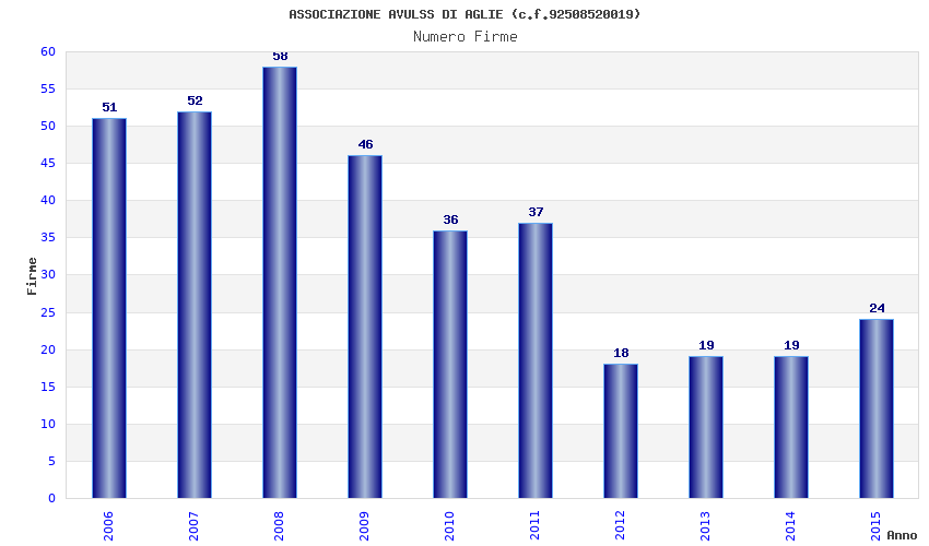 | Anno | Firme | Importi | Media | Naz. | Reg. | Prov. | Comu. |