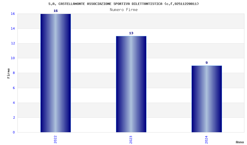 | Anno | Firme | Importi | Media | Naz. | Reg. | Prov. | Comu. |