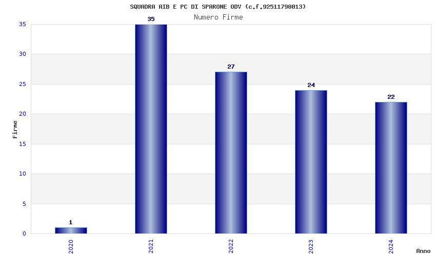 | Anno | Firme | Importi | Media | Naz. | Reg. | Prov. | Comu. |