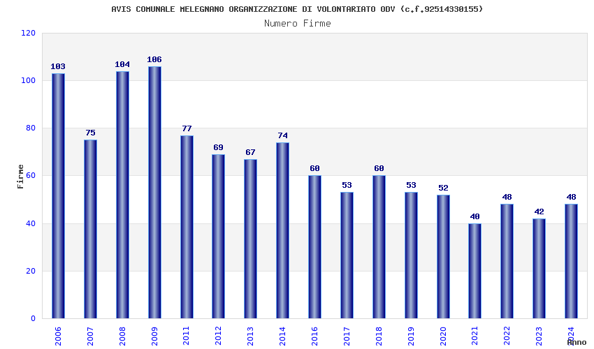 | Anno | Firme | Importi | Media | Naz. | Reg. | Prov. | Comu. |
