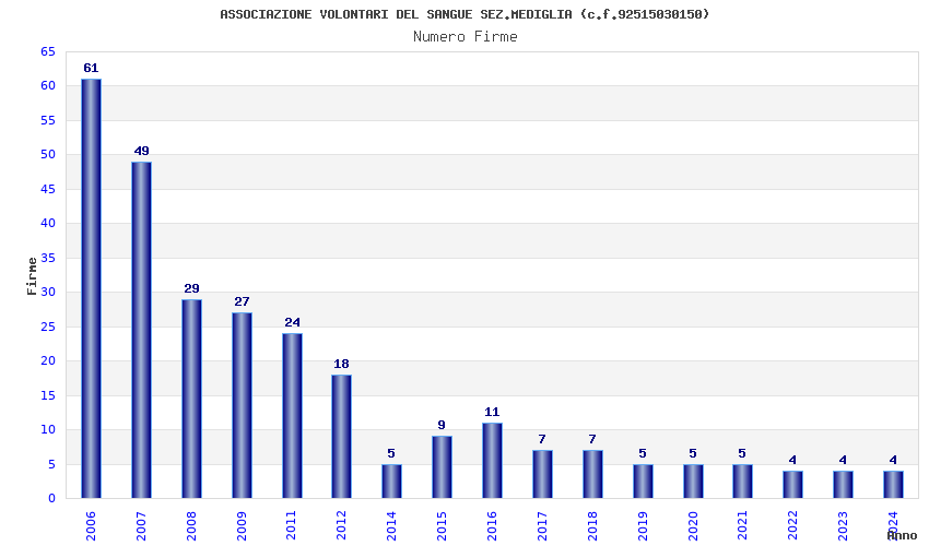 | Anno | Firme | Importi | Media | Naz. | Reg. | Prov. | Comu. |