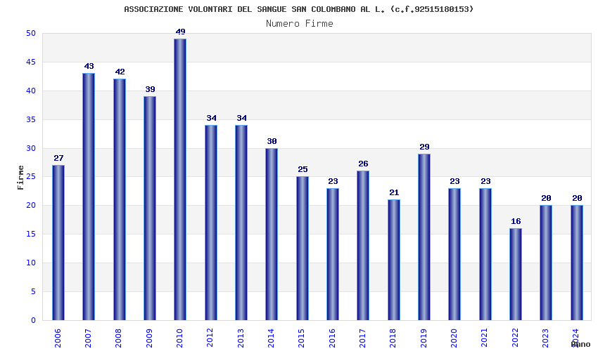 | Anno | Firme | Importi | Media | Naz. | Reg. | Prov. | Comu. |