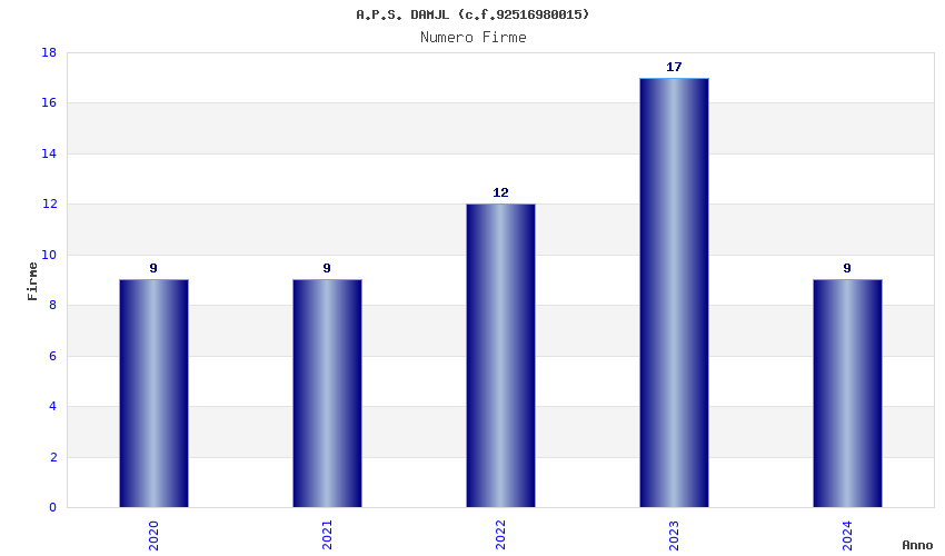 | Anno | Firme | Importi | Media | Naz. | Reg. | Prov. | Comu. |