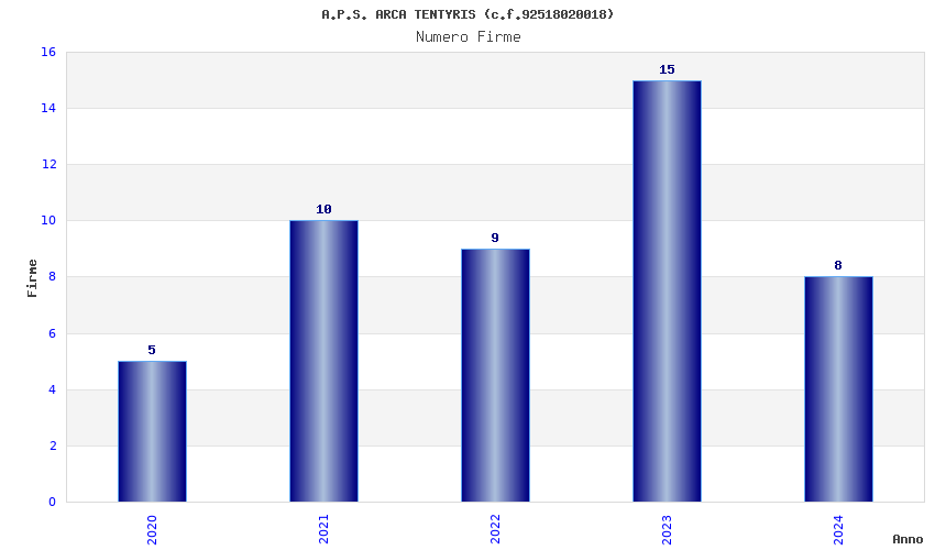 | Anno | Firme | Importi | Media | Naz. | Reg. | Prov. | Comu. |