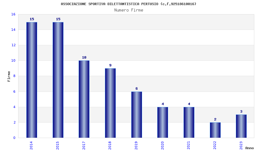 | Anno | Firme | Importi | Media | Naz. | Reg. | Prov. | Comu. |