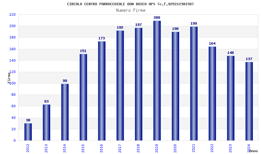 | 2019 | 209 | 5.496,86 | 26,30 | 10.166 | 2.387 | 36 | 1 |
