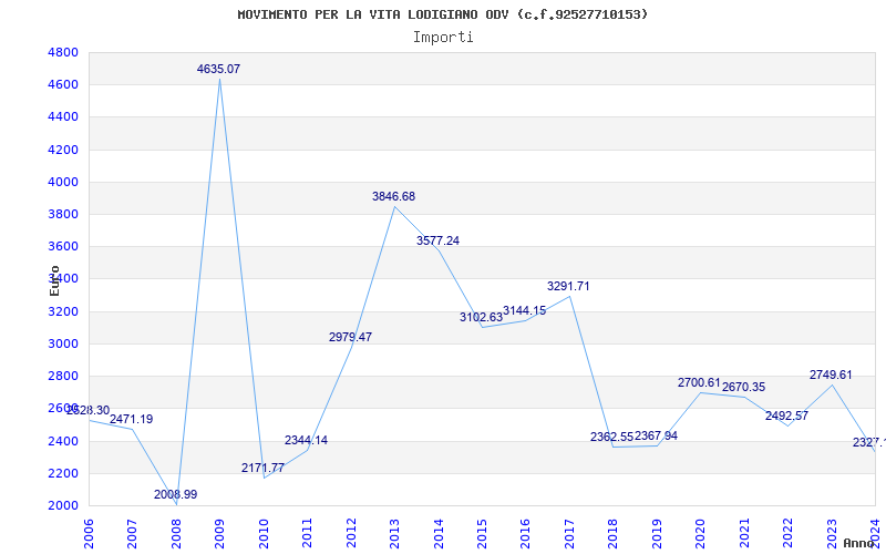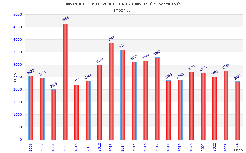 | Anno | Firme | Importi | Media | Naz. | Reg. | Prov. | Comu. |