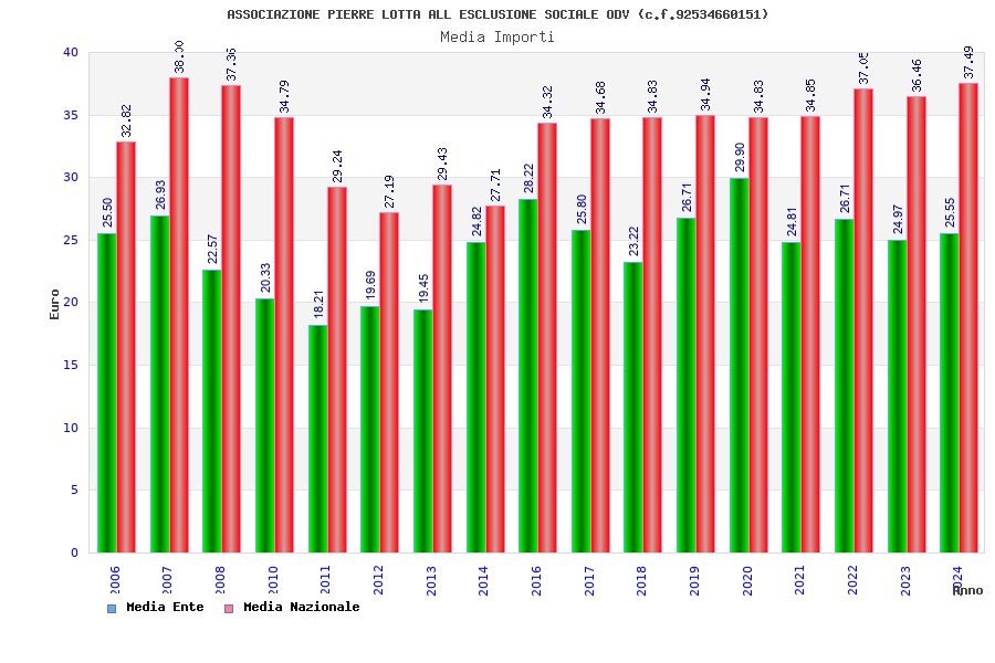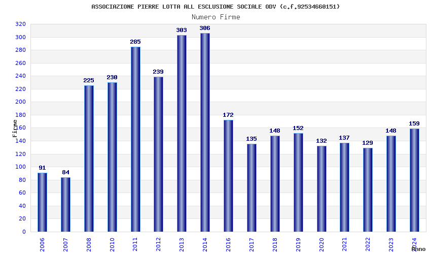 | Anno | Firme | Importi | Media | Naz. | Reg. | Prov. | Comu. |