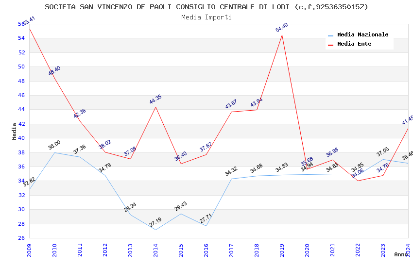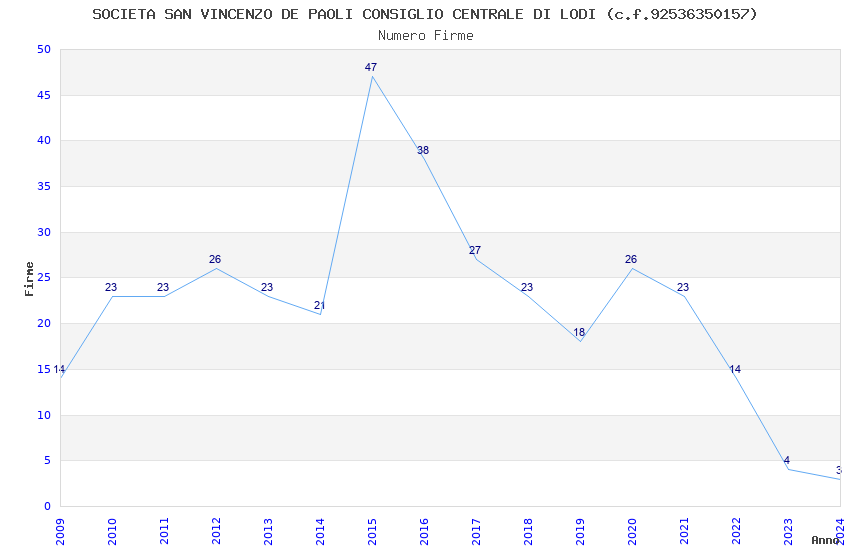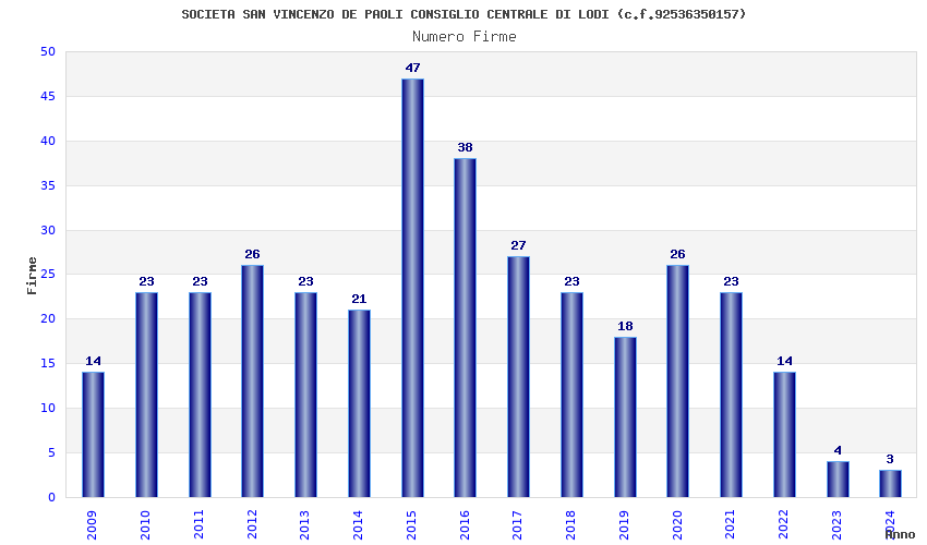 | Anno | Firme | Importi | Media | Naz. | Reg. | Prov. | Comu. |