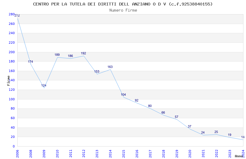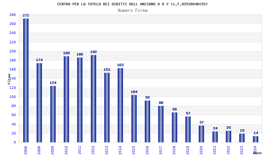 | Anno | Firme | Importi | Media | Naz. | Reg. | Prov. | Comu. |