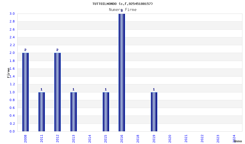 | Anno | Firme | Importi | Media | Naz. | Reg. | Prov. | Comu. |