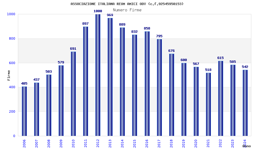 | Anno | Firme | Importi | Media | Naz. | Reg. | Prov. | Comu. |
