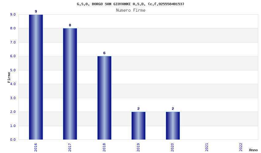 | Anno | Firme | Importi | Media | Naz. | Reg. | Prov. | Comu. |