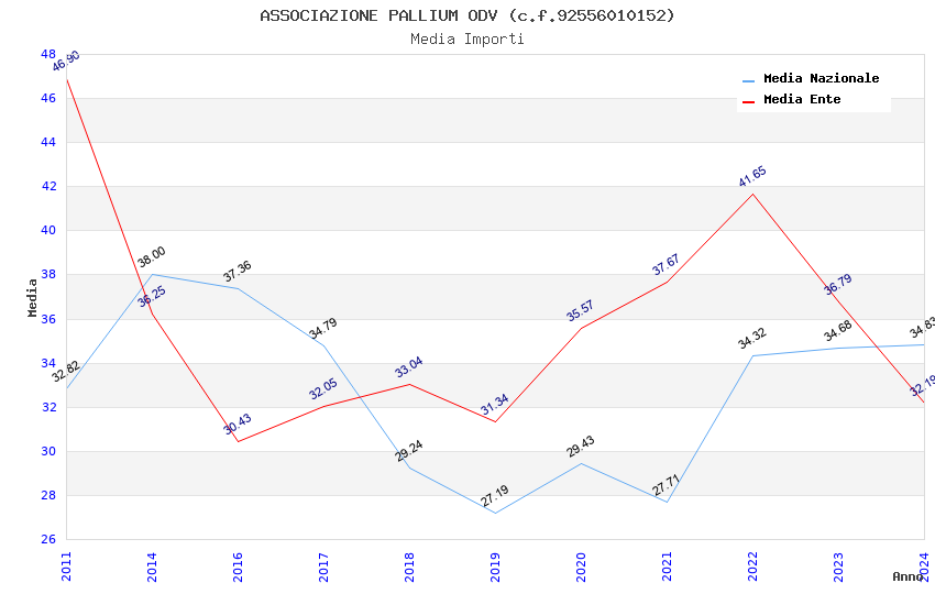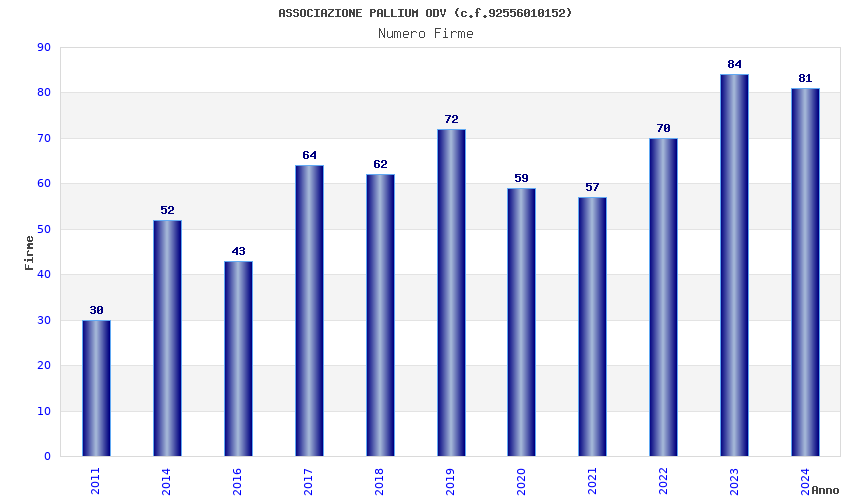 | Anno | Firme | Importi | Media | Naz. | Reg. | Prov. | Comu. |