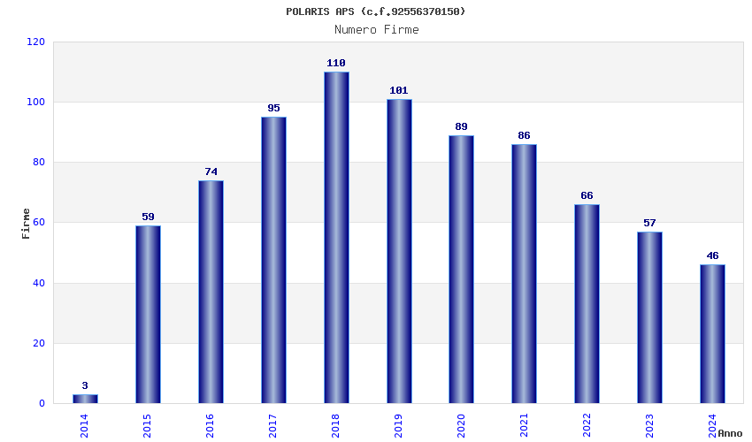 | Anno | Firme | Importi | Media | Naz. | Reg. | Prov. | Comu. |