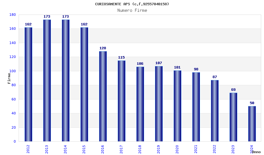 | Anno | Firme | Importi | Media | Naz. | Reg. | Prov. | Comu. |