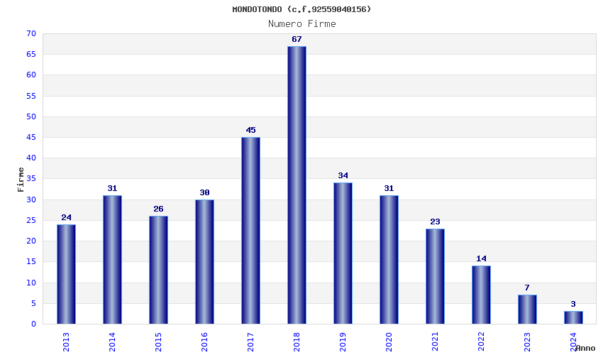 | Anno | Firme | Importi | Media | Naz. | Reg. | Prov. | Comu. |