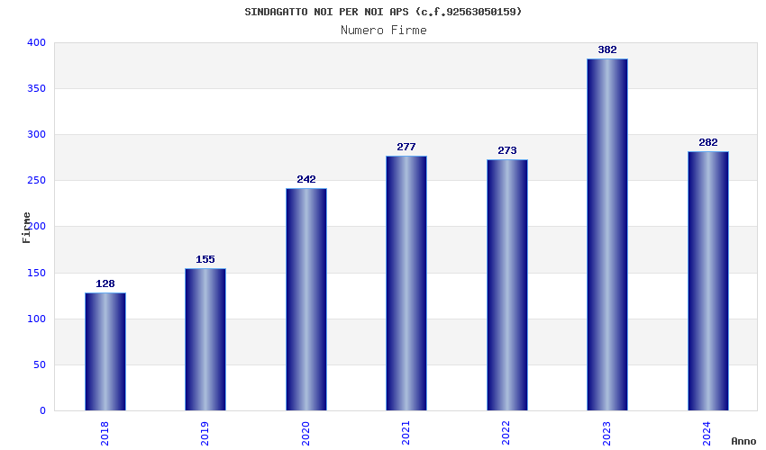 | Anno | Firme | Importi | Media | Naz. | Reg. | Prov. | Comu. |