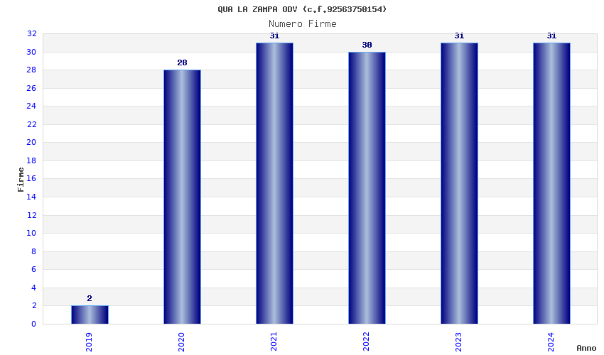 | Anno | Firme | Importi | Media | Naz. | Reg. | Prov. | Comu. |