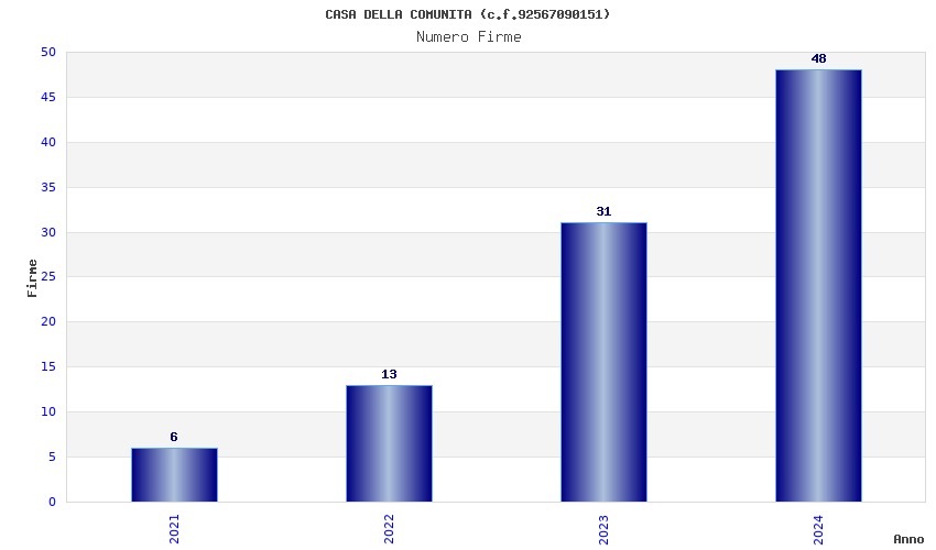 | Anno | Firme | Importi | Media | Naz. | Reg. | Prov. | Comu. |