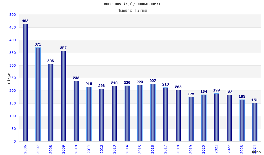 | Anno | Firme | Importi | Media | Naz. | Reg. | Prov. | Comu. |