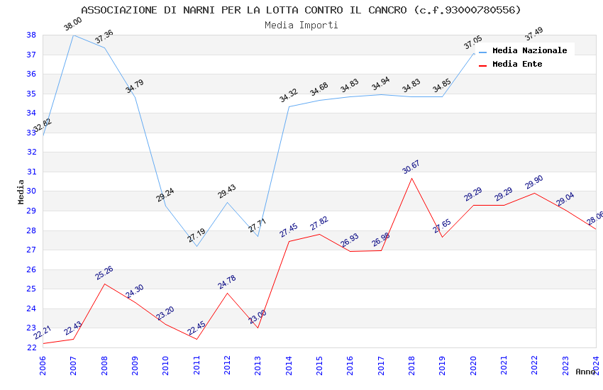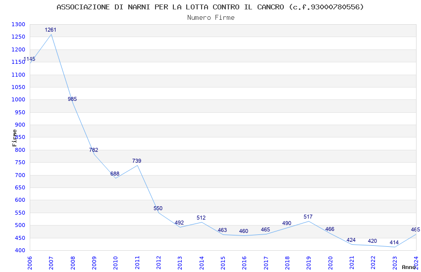 | Anno | Firme | Importi | Media | Naz. | Reg. | Prov. | Comu. |