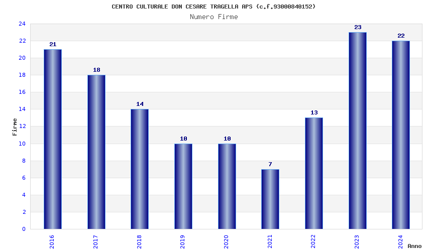 | Anno | Firme | Importi | Media | Naz. | Reg. | Prov. | Comu. |