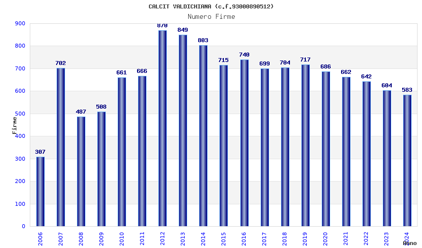 | Anno | Firme | Importi | Media | Naz. | Reg. | Prov. | Comu. |