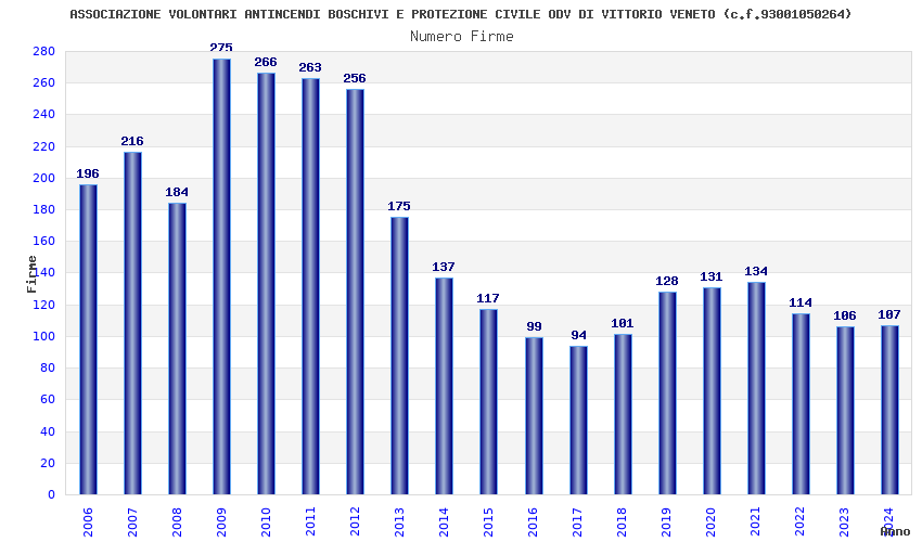 | Anno | Firme | Importi | Media | Naz. | Reg. | Prov. | Comu. |