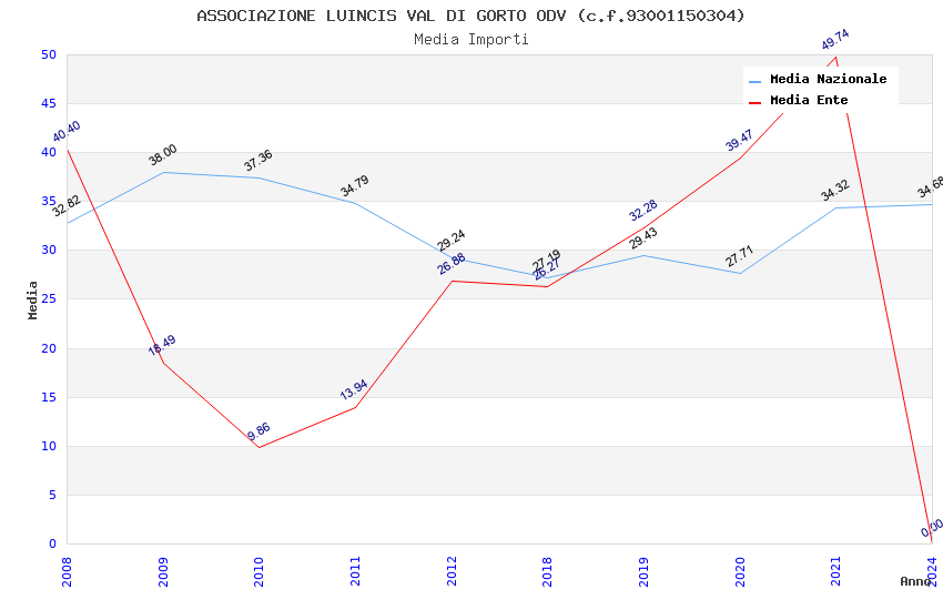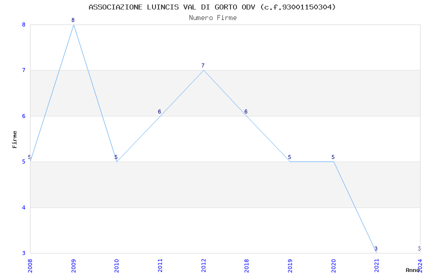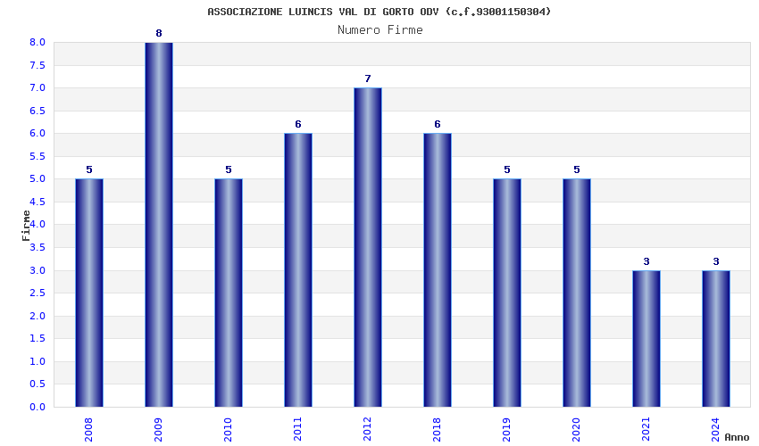 | Anno | Firme | Importi | Media | Naz. | Reg. | Prov. | Comu. |