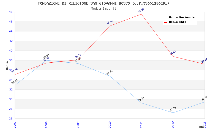 | Anno | Firme | Importi | Media | Naz. | Reg. | Prov. | Comu. |
