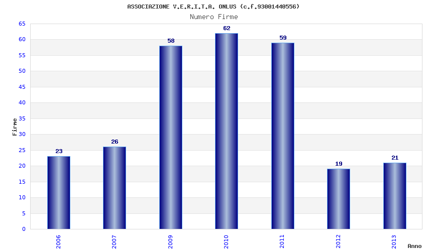 | Anno | Firme | Importi | Media | Naz. | Reg. | Prov. | Comu. |
