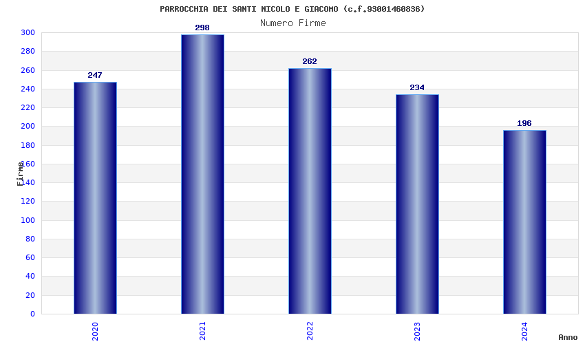 | Anno | Firme | Importi | Media | Naz. | Reg. | Prov. | Comu. |