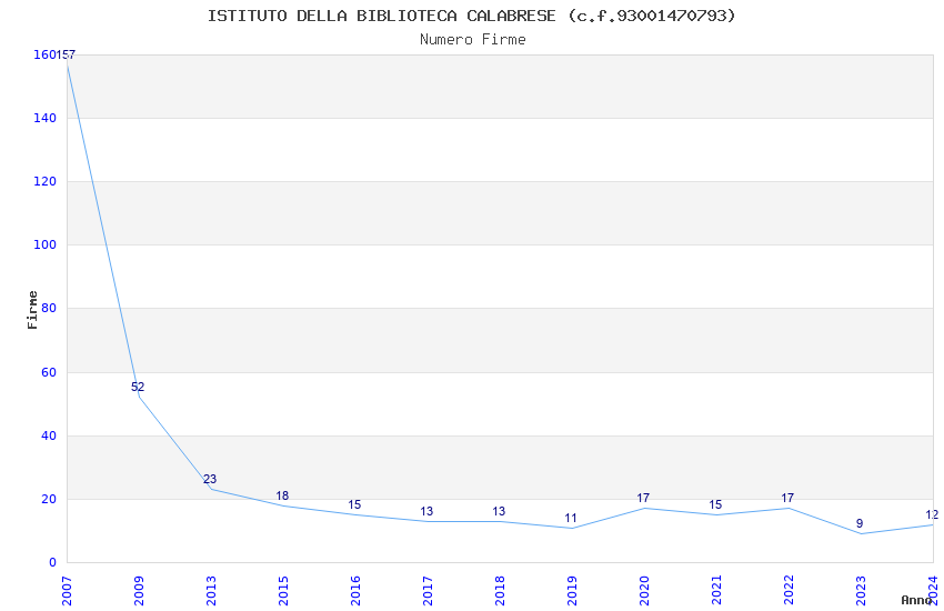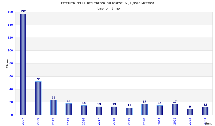 | Anno | Firme | Importi | Media | Naz. | Reg. | Prov. | Comu. |