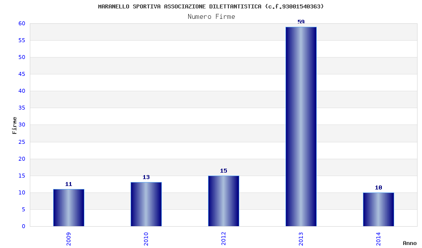 | Anno | Firme | Importi | Media | Naz. | Reg. | Prov. | Comu. |
