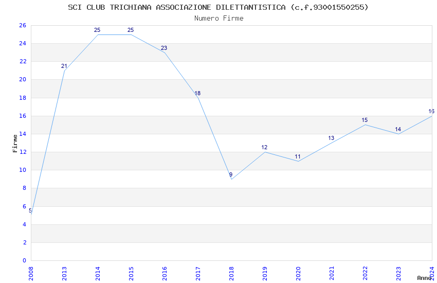 | 2015 | 25 | 1.329,47 | 53,18 | 27.530 | 2.619 | 144 | 3 |
