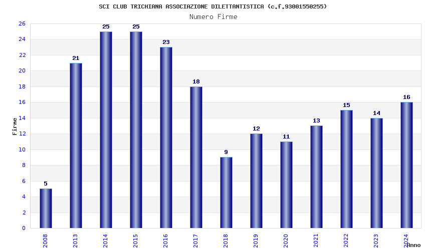 | 2014 | 25 | 1.627,57 | 65,10 | 24.538 | 2.332 | 125 | 3 |