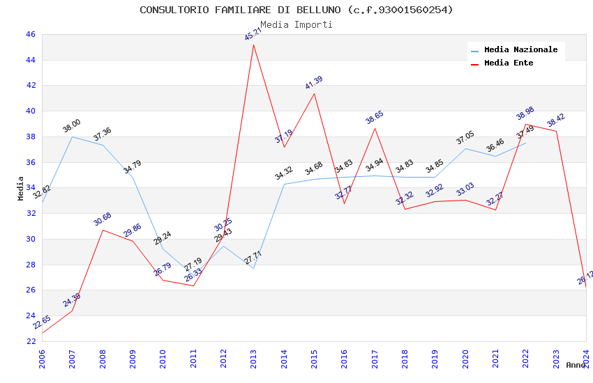 | Anno | Firme | Importi | Media | Naz. | Reg. | Prov. | Comu. |