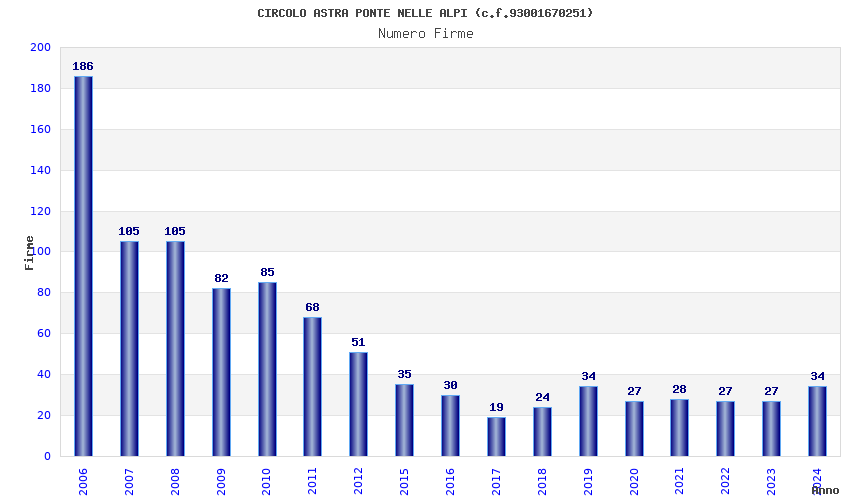 | Anno | Firme | Importi | Media | Naz. | Reg. | Prov. | Comu. |