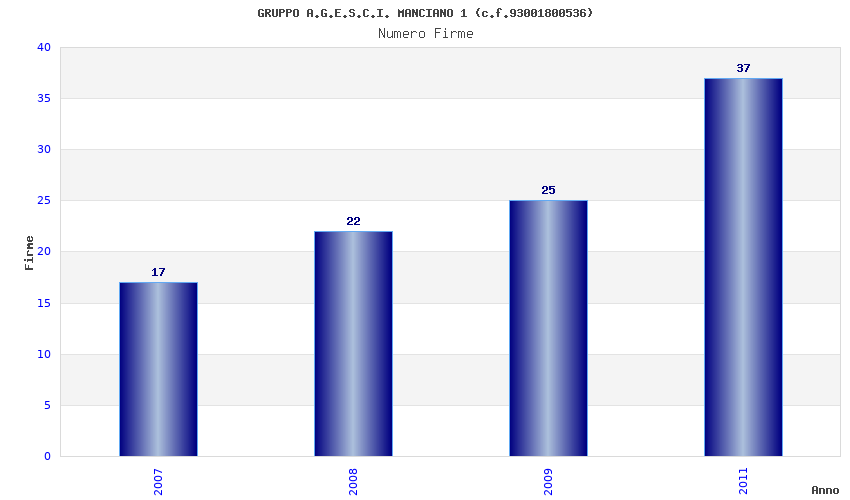 | Anno | Firme | Importi | Media | Naz. | Reg. | Prov. | Comu. |