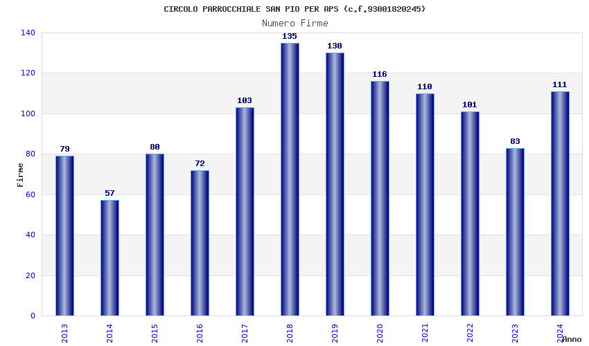 | Anno | Firme | Importi | Media | Naz. | Reg. | Prov. | Comu. |