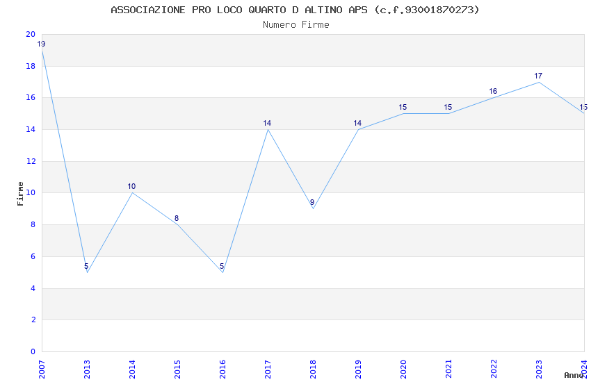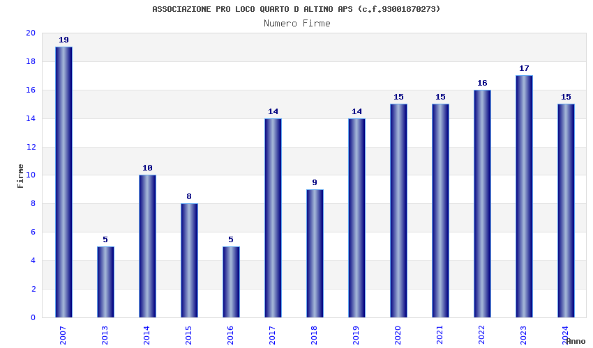 | Anno | Firme | Importi | Media | Naz. | Reg. | Prov. | Comu. |