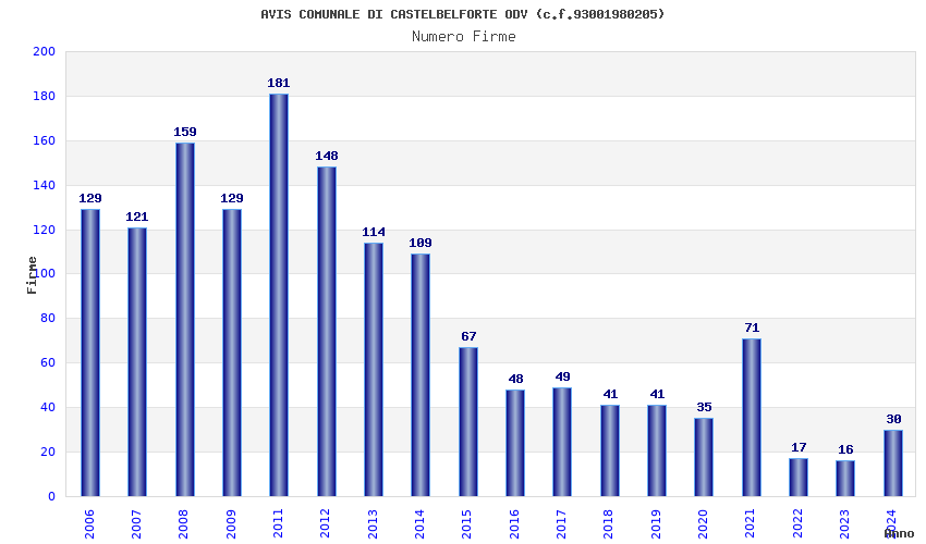 | Anno | Firme | Importi | Media | Naz. | Reg. | Prov. | Comu. |